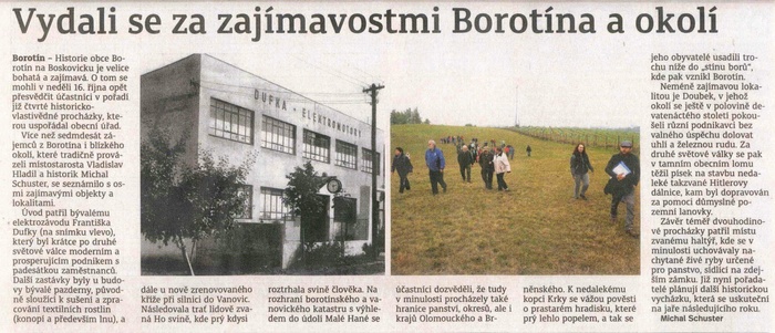 Úvod > Život v obci > Historie obce > Napsali o nás > Blanenský deník Rovnost 21.10.2016 - Vydali se za zajímavostmi Borotína a okolí