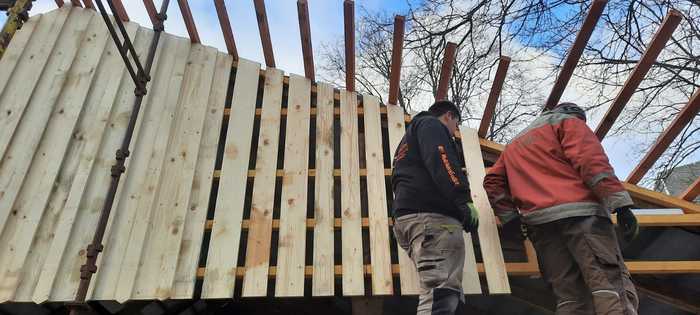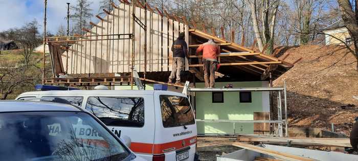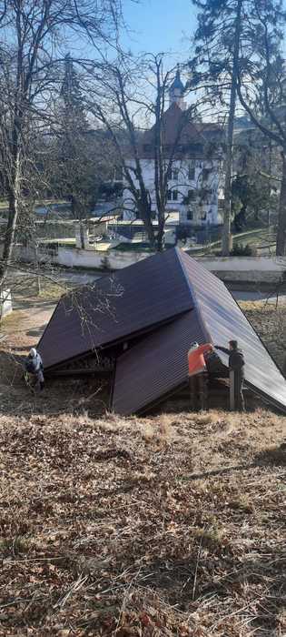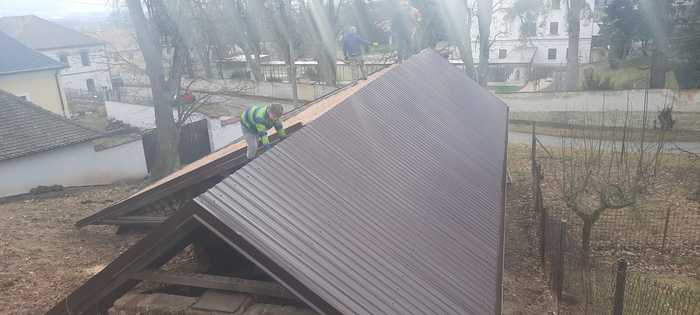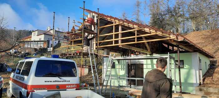 Úvod > Občan a obec > Reportáž z akce > Oprava střechy hasičský sklípek
